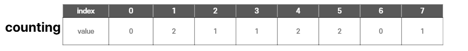 counting 배열은 arr의 값들의 개수를 알 수 있는 배열이다.